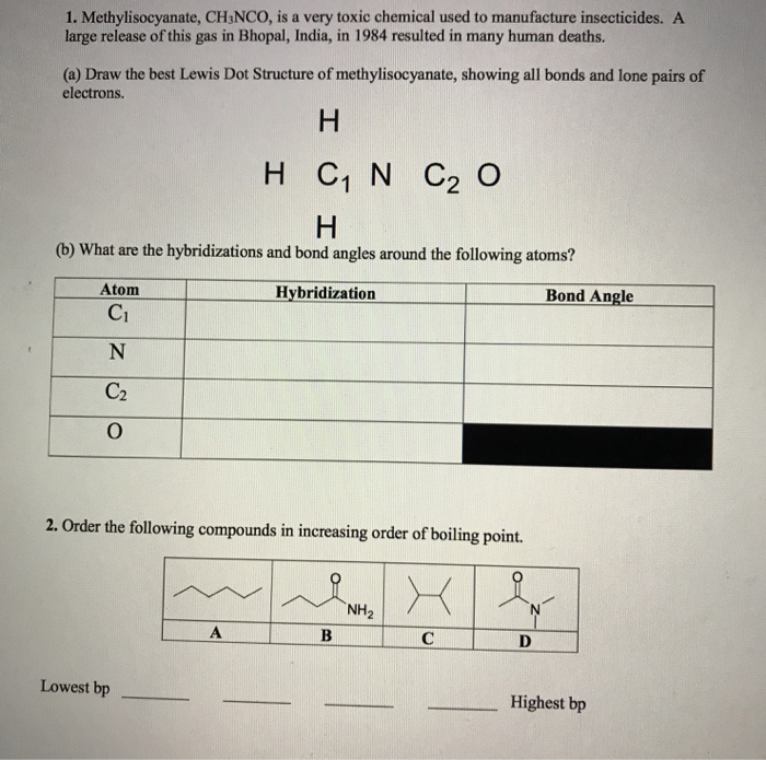 Hence bond angle of the overall structure. There are several lewis structures for a nitrile oxide: Draw a lewis structure for methyl isocyanate, ch3nco, showing all valence electrons.