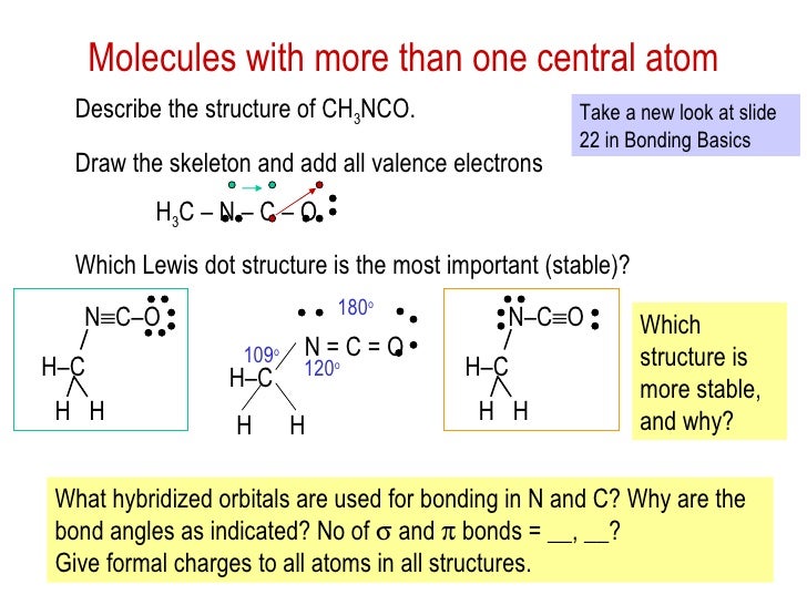 You could also draw the structure, methyl nitrite, as shown here. Draw the lewis structure of ch3nco (with minimized formal charges) and then choose the appropriate set of hybridization states for the three central atoms. I also go over hybridization, shape, sigma, pi bonding and bond angles.