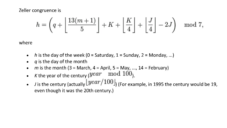 Raw download clone embed print report # zeller's congruence # check to make sure year is in the right range. It is called zeller's congruence, which was invented by christian zeller. It can get pretty slow.