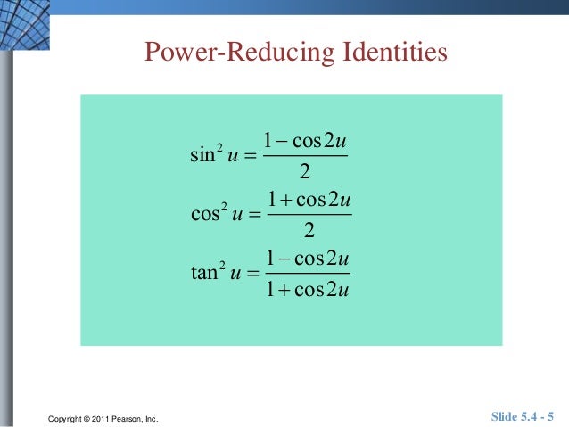 These trigonometric power reduction identities are derived by solving second and. Power reducing formulas for sine and cosine, example 1. Videos, worksheets, games and activities to help precalculus students learn about the power reducing identities and how to use them.