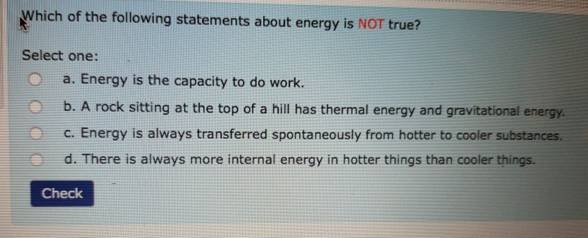 Potential energy is the energy stored in an object due to its position. Which of the following statements about energy is true? Which one of the following statements concerning kinetic energy is true?