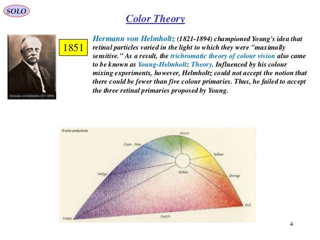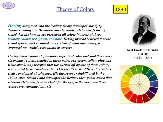 His two theories are the trichromatic theory of color vision and the place Hermann von helmholtz (1821‒1894) helmholtz developed two major theories in psychophysiology regarding the transduction of physical stimuli into nervous impulses and how qualitative, stimulus information is coded into neural signals. One is most sensitive to red, one is most sensitive to green, and one is most sensitive to.