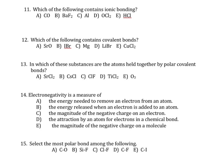 Atoms are able to form three different types of chemical bonds: Which of the substances contains covalent bonds and which ones contain ionic bonds. Chemical bonding and molecular structure book:aakash ins.